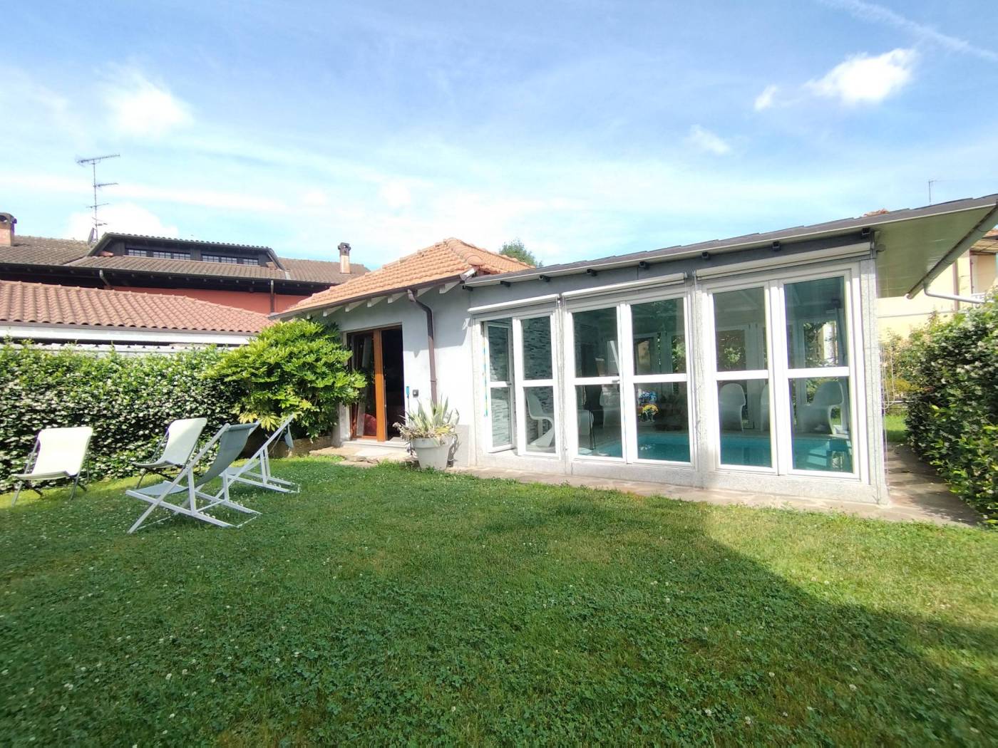 Piscina riscaldata coperta con veranda apribile per l'estate