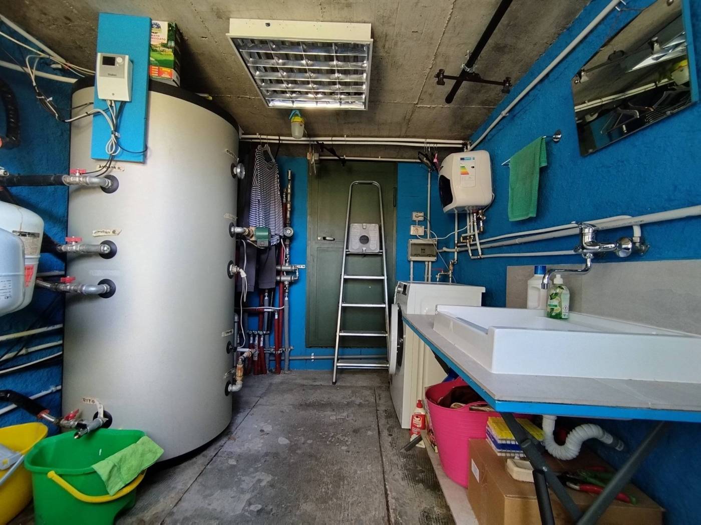 locale tecnico con pannello solare per produzione acqua calda con accumulo e riciclo