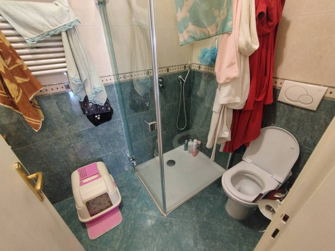 secondo bagno cieco con doccia (1x0,80 m) e zona lavanderia con aspirazione forzata.