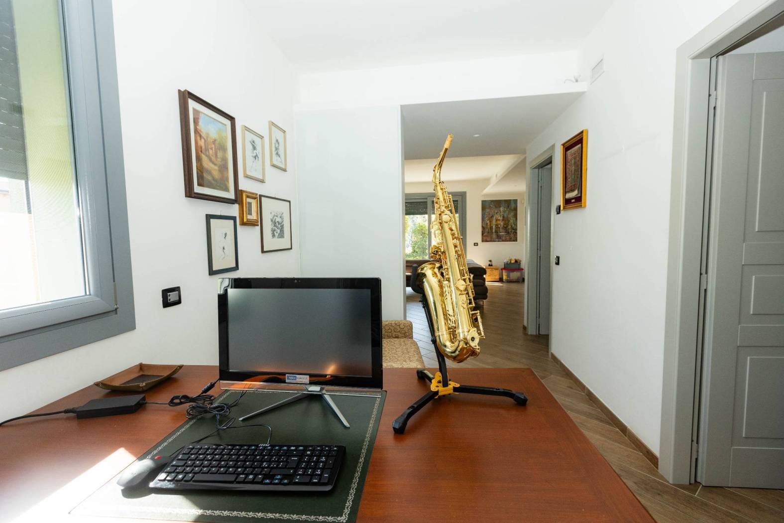 o Elegante soggiorno con porta finestra che accede al terrazzo con veranda bioclimatica Gibus
