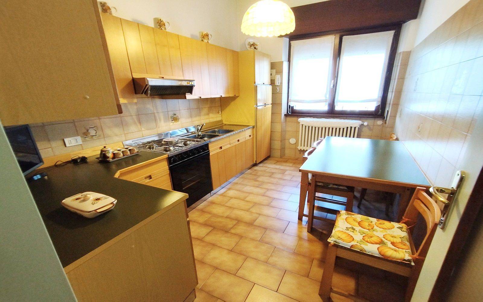 Piano rialzato: ingresso, ampio soggiorno, cucina abitabile, due camere da letto e un bagno con vasca recentemente ristrutturato.
